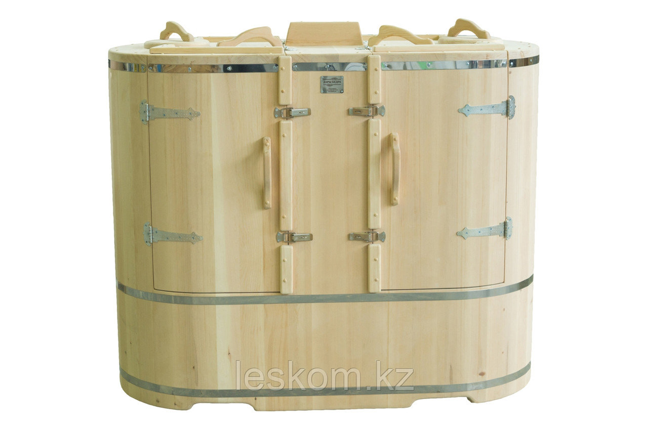 Двухместная фитобочка позволяет принимать процедуры одновременно двум людям, что очень удобно для семейного отдыха или в кругу друзей. Ширина 78 см позволяет занести бочку в помещение со стандартным проёмом в собранном виде. Если двери меньше 78 см, то рекомендуем заказать разборный вид, который оплачивается отдельно.
